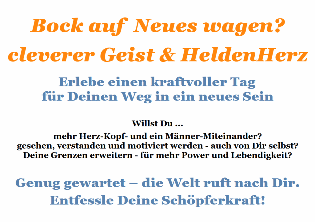 Sa., 08.11., 10:00 Uhr * WE-Termin – MännerTag: Verschoben auf So. 23.11